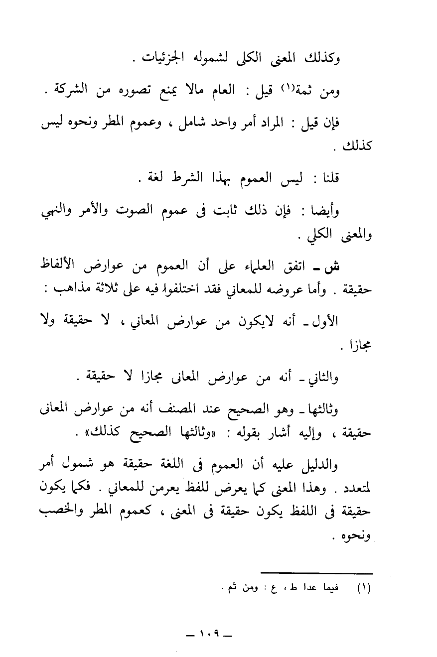 وَمِنْ ثَمَّةَ قِيلَ: الْعَامُّ مَا لَا يَمْنَعُ تَصَوُّرُهُ مِنَ الشَّرِكَةِ.