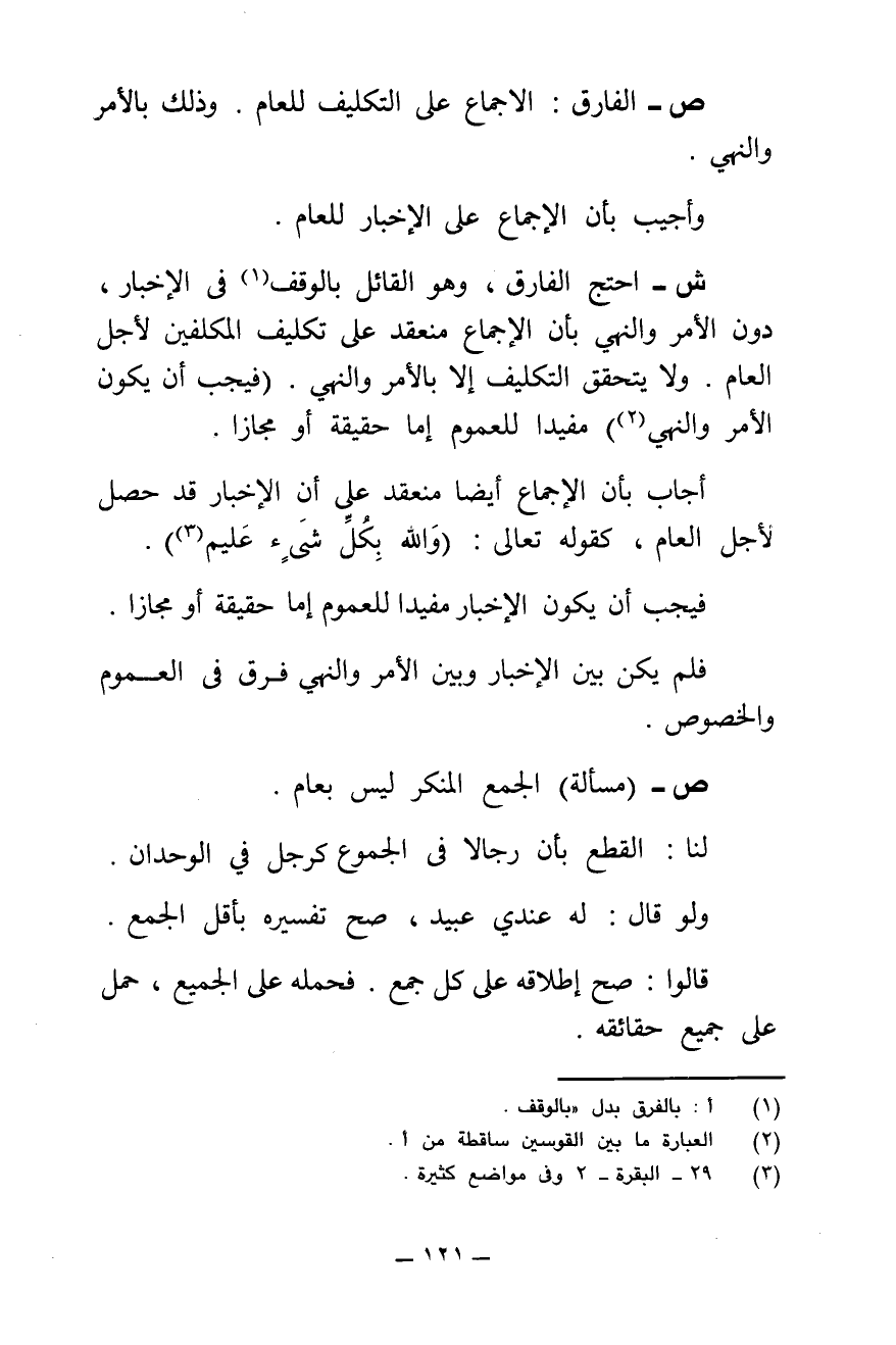 ص - (مَسْأَلَةٌ) الْجَمْعُ الْمُنَكَّرُ لَيْسَ بِعَامٍّ.