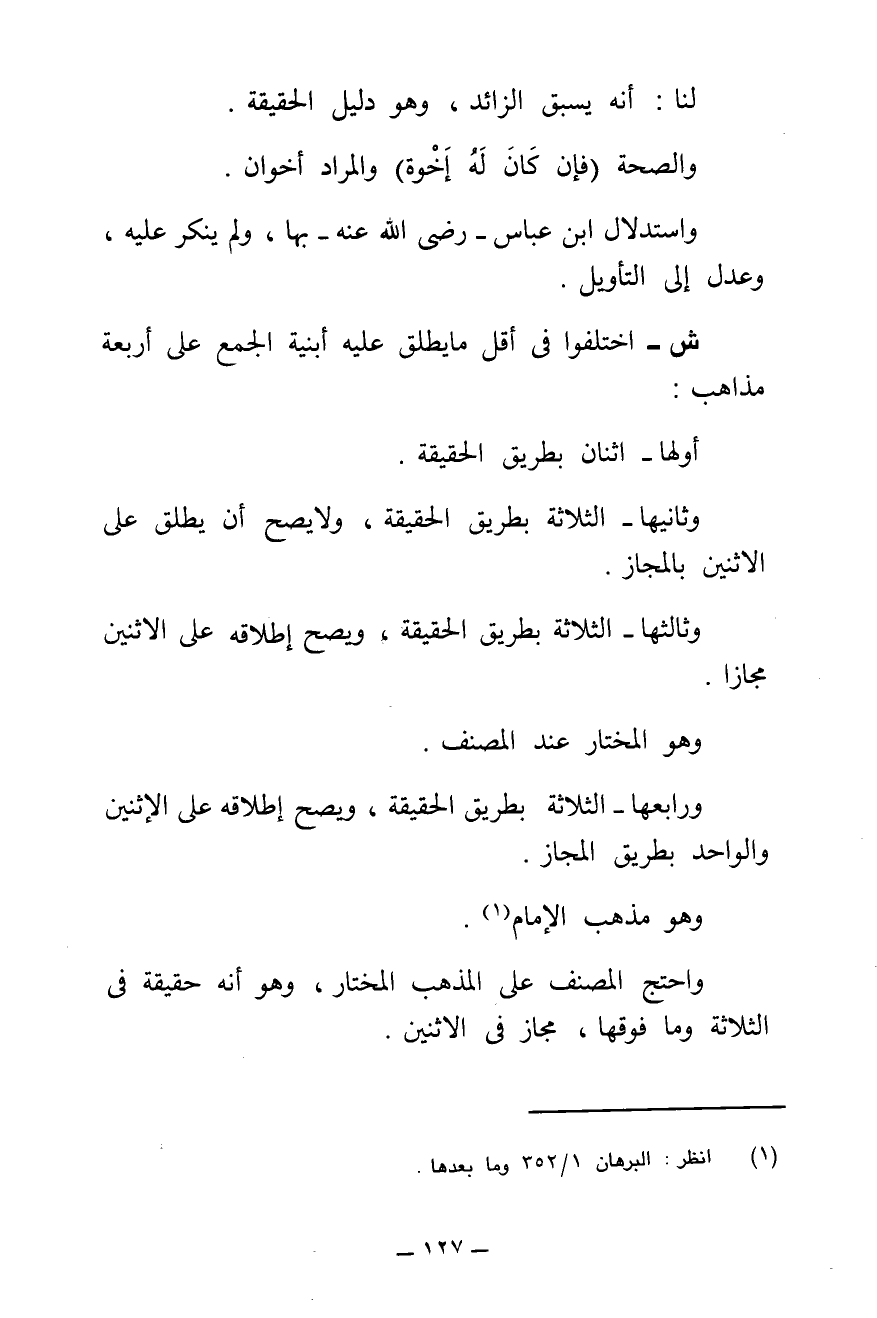 ص - قَالُوا: {فَإِنْ كَانَ لَهُ إِخْوَةٌ} [النساء: ١١] (وَالْمُرَادُ أَخَوَانِ) وَالْأَصْلُ الْحَقِيقَةُ.