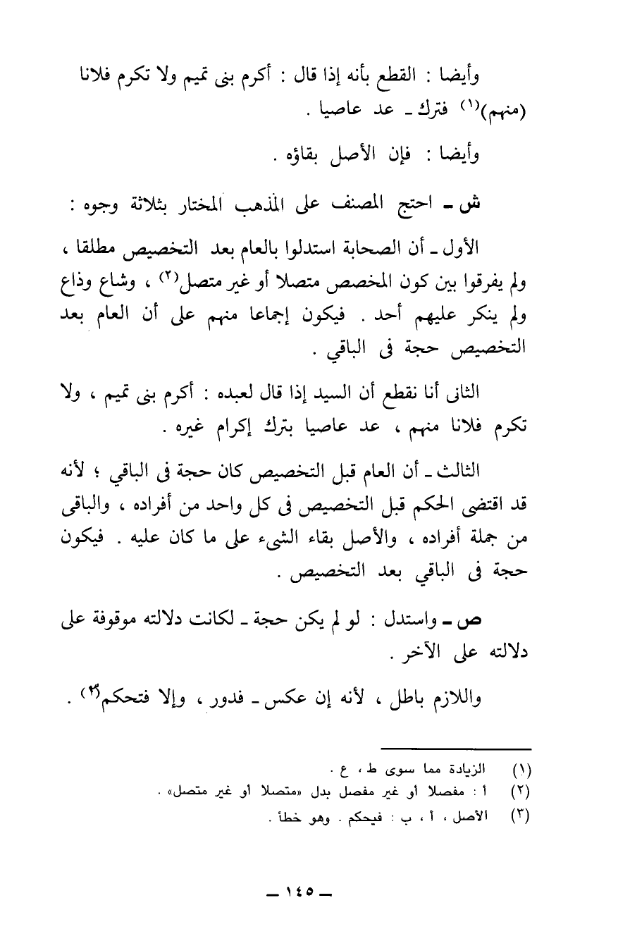 وَأَيْضًا: الْقَطْعُ بِأَنَّهُ إِذَا قَالَ: أَكْرِمْ بَنِي تَمِيمٍ وَلَا تُكْرِمْ فُلَانًا (مِنْهُمْ) فَتَرَكَ عُدَّ عَاصِيًا.