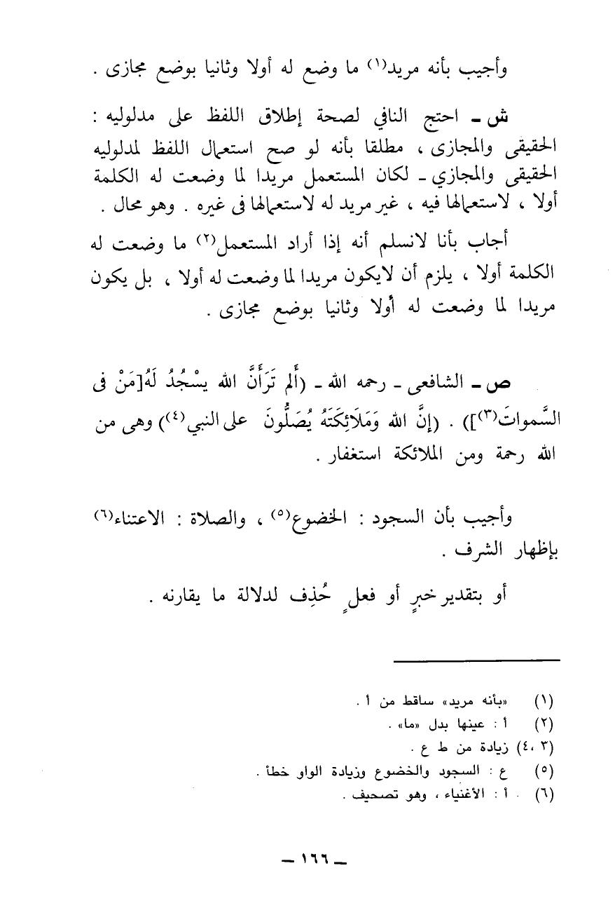 وَأُجِيبُ بِأَنَّهُ مُرِيدٌ مَا وُضِعَ لَهُ أَوَّلًا وَثَانِيًا بِوَضْعٍ مَجَازِيٍّ.