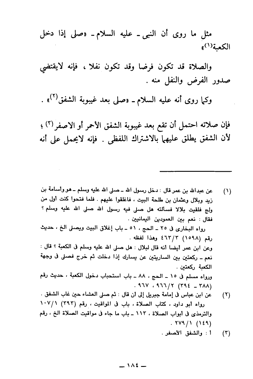 مْثِلَ مَا رُوِيَ أَنَّ النَّبِيَّ - عَلَيْهِ السَّلَامُ - " «صَلَّى إِذَا دَخَلَ الْكَعْبَةَ» ".