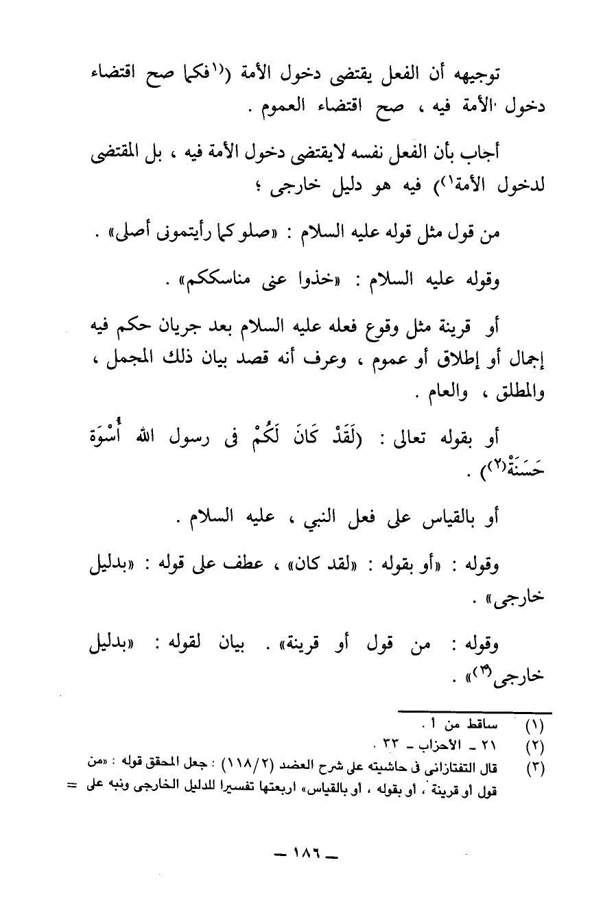 وَقَوْلُهُ: " أَوْ بِقَوْلِهِ: " {لَقَدْ كَانَ} [الأحزاب: ٢١] "، عَطْفٌ عَلَى قَوْلِهِ: " بِدَلِيلٍ خَارِجِيٍّ ".