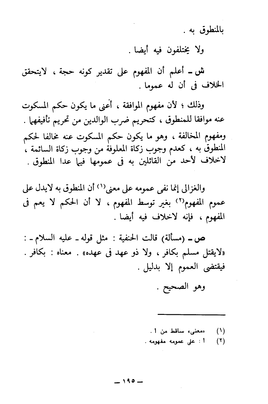 ص - (مَسْأَلَةٌ) قَالَتِ الْحَنَفِيَّةُ: مِثْلَ قَوْلِهِ - عَلَيْهِ السَّلَامُ -: " «لَا يُقْتَلُ مُسْلِمٌ بِكَافِرٍ، وَلَا ذُو عَهْدٍ فِي عَهْدِهِ» ". مَعْنَاهُ: بِكَافِرٍ. فَيَقْتَضِي الْعُمُومَ إِلَّا بِدَلِيلٍ.