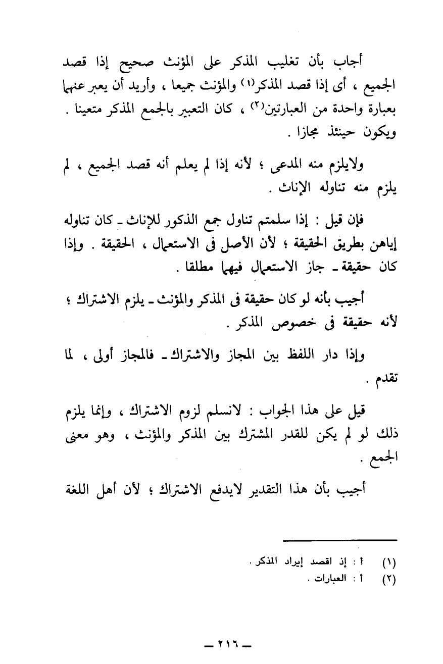 أُجِيبُ بِأَنَّ هَذَا التَّقْدِيرَ لَا يَدْفَعُ الِاشْتِرَاكَ ; لِأَنَّ أَهْلَ اللُّغَةِ