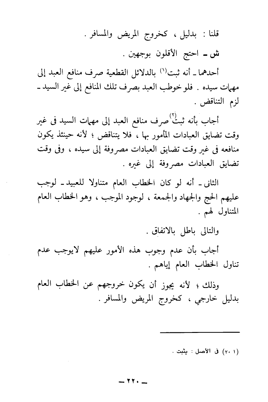 قُلْنَا: بِدَلِيلٍ، كَخُرُوجِ الْمَرِيضِ وَالْمُسَافِرِ.