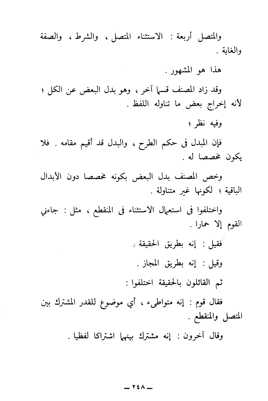 فَقَالَ قَوْمٌ: إِنَّهُ مُتَوَاطِئٌ، أَيْ مَوْضُوعٌ لِلْقَدْرِ الْمُشْتَرَكِ بَيْنَ الْمُتَّصِلِ وَالْمُنْقَطِعِ.