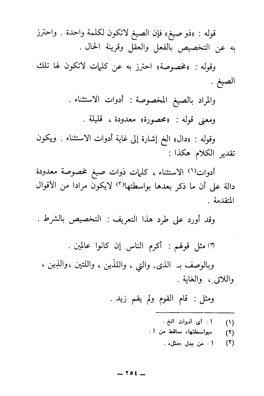 وَالْمُرَادُ بِالصِّيَغِ الْمَخْصُوصَةِ: أَدَوَاتُ الِاسْتِثْنَاءِ.