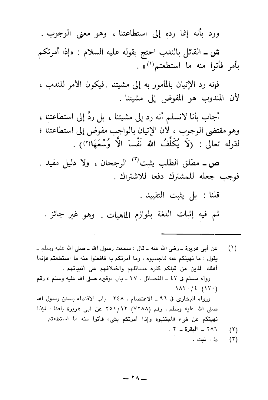 وَرُدَّ بِأَنَّهُ إِنَّمَا رَدُّهُ إِلَى اسْتِطَاعَتِنَا، وَهُوَ مَعْنَى الْوُجُوبِ.