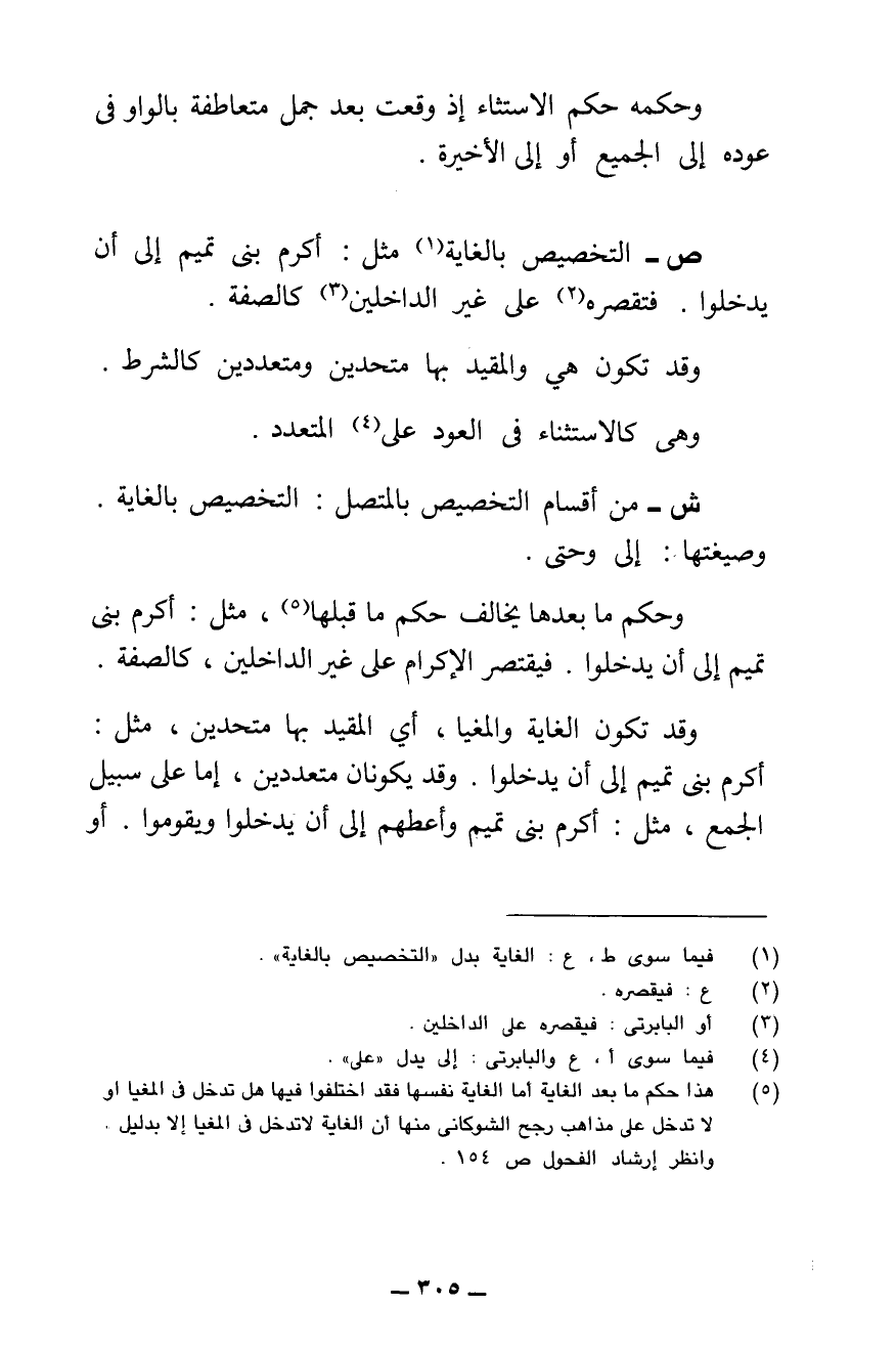 ش - مِنْ أَقْسَامِ التَّخْصِيصِ بِالْمُتَّصِلِ: التَّخْصِيصُ بِالْغَايَةِ. وَصِيغَتُهَا: إِلَى وَحَتَّى.