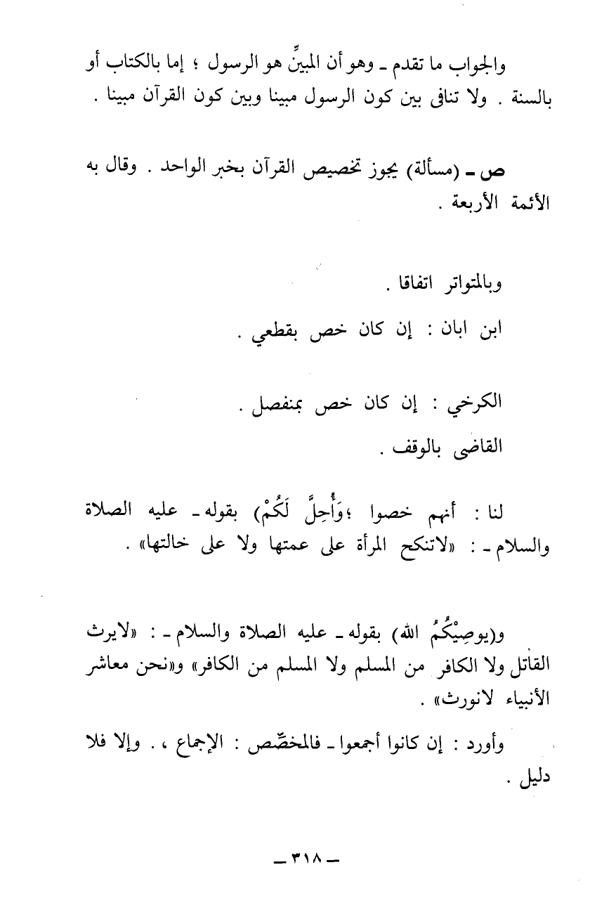 ش - يَجُوزُ تَخْصِيصُ الْكِتَابِ بِالسُّنَّةِ الْمُتَوَاتِرَةِ بِالِاتِّفَاقِ.