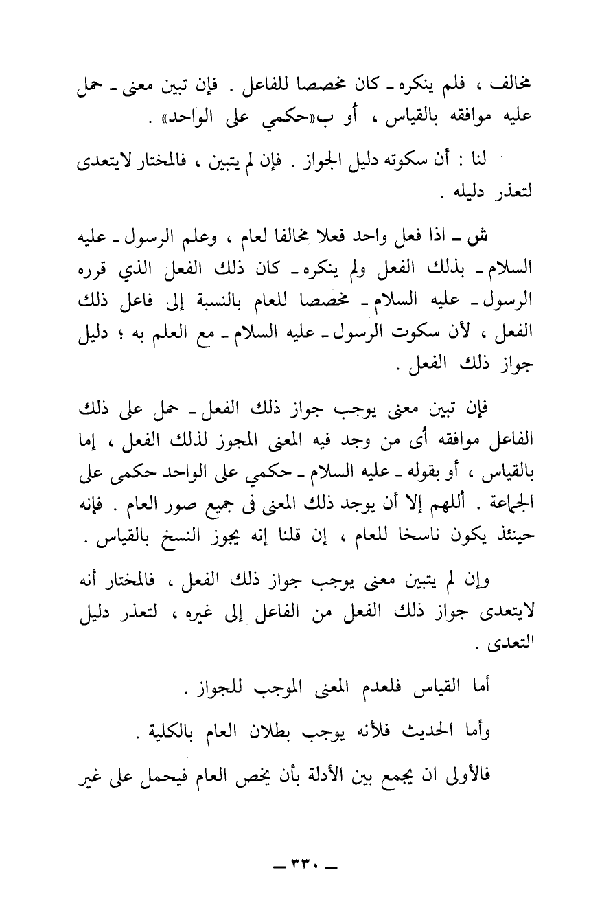 لَنَا: أَنَّ سُكُوتَهُ دَلِيلُ الْجَوَازِ، فَإِنْ لَمْ يَتَبَيَّنْ، فَالْمُخْتَارُ لَا يَتَعَدَّى لِتَعَذُّرِ دَلِيلِهِ.