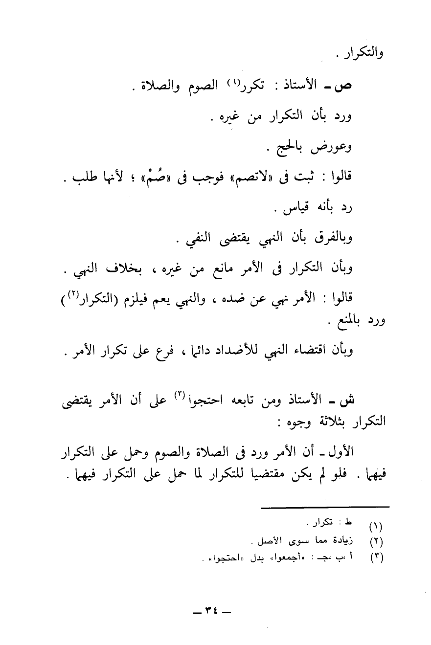 ش - الْأُسْتَاذُ وَمَنْ تَابَعَهُ احْتَجُّوا عَلَى أَنَّ الْأَمْرَ يَقْتَضِي التَّكْرَارَ بِثَلَاثَةِ وُجُوهٍ: