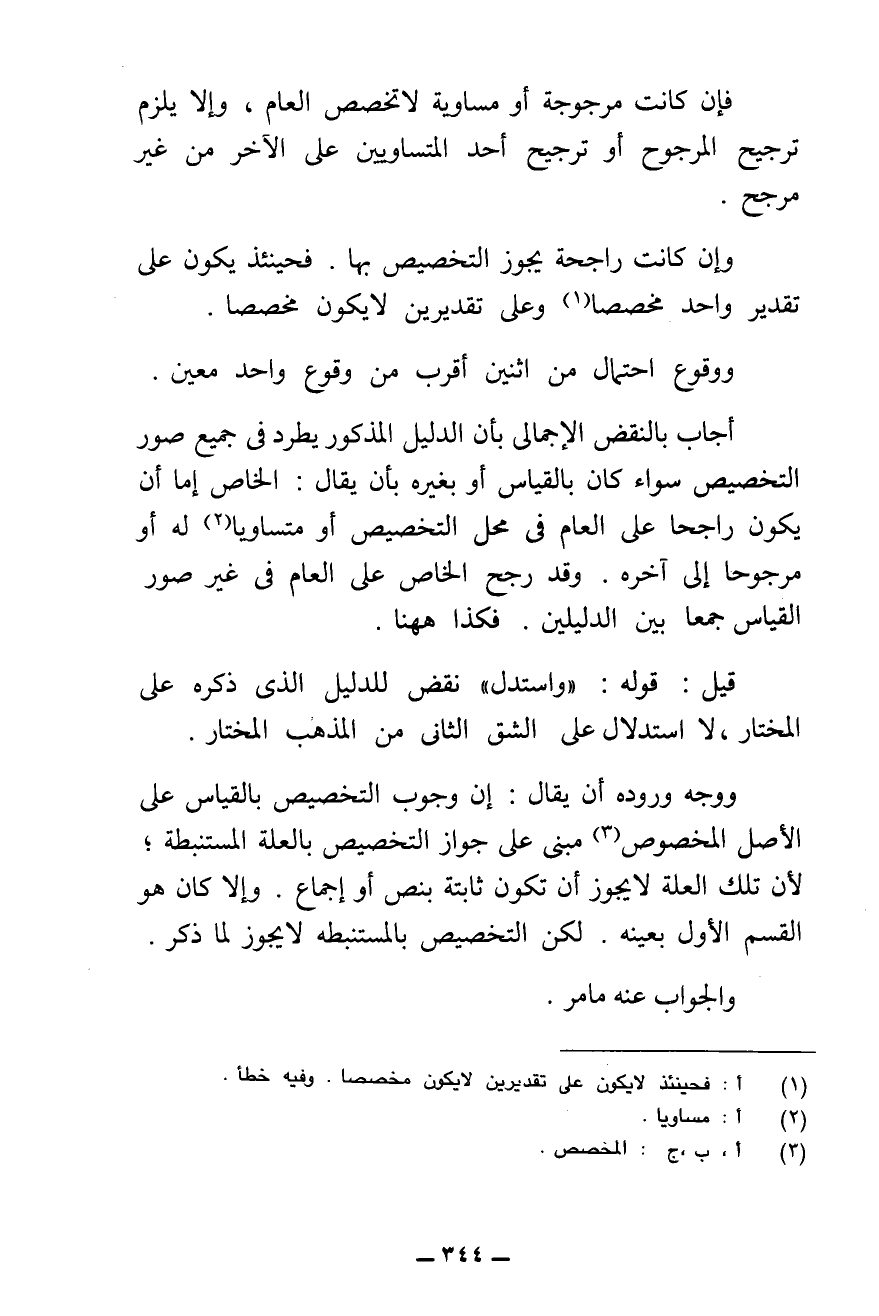 ش - احْتَجَّ الْجُبَّائِيُّ عَلَى تَقْدِيمِ الْعَامِّ عَلَى الْقِيَاسِ مُطْلَقًا بِأَنَّهُ لَوْ خُصَّ الْعَامُّ بِالْقِيَاسِ لَزِمَ تَرْجِيحُ الْأَضْعَفِ.