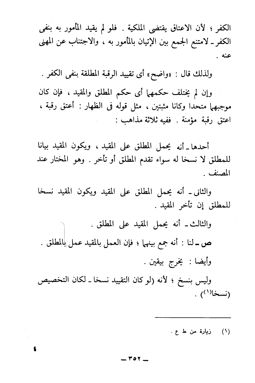 ش - احْتَجَّ الْمُصَنِّفُ عَلَى أَنَّهُ يَجِبُ حَمْلُ الْمُطْلَقِ عَلَى الْمُقَيَّدِ، لَا الْعَكْسُ بِوَجْهَيْنِ: