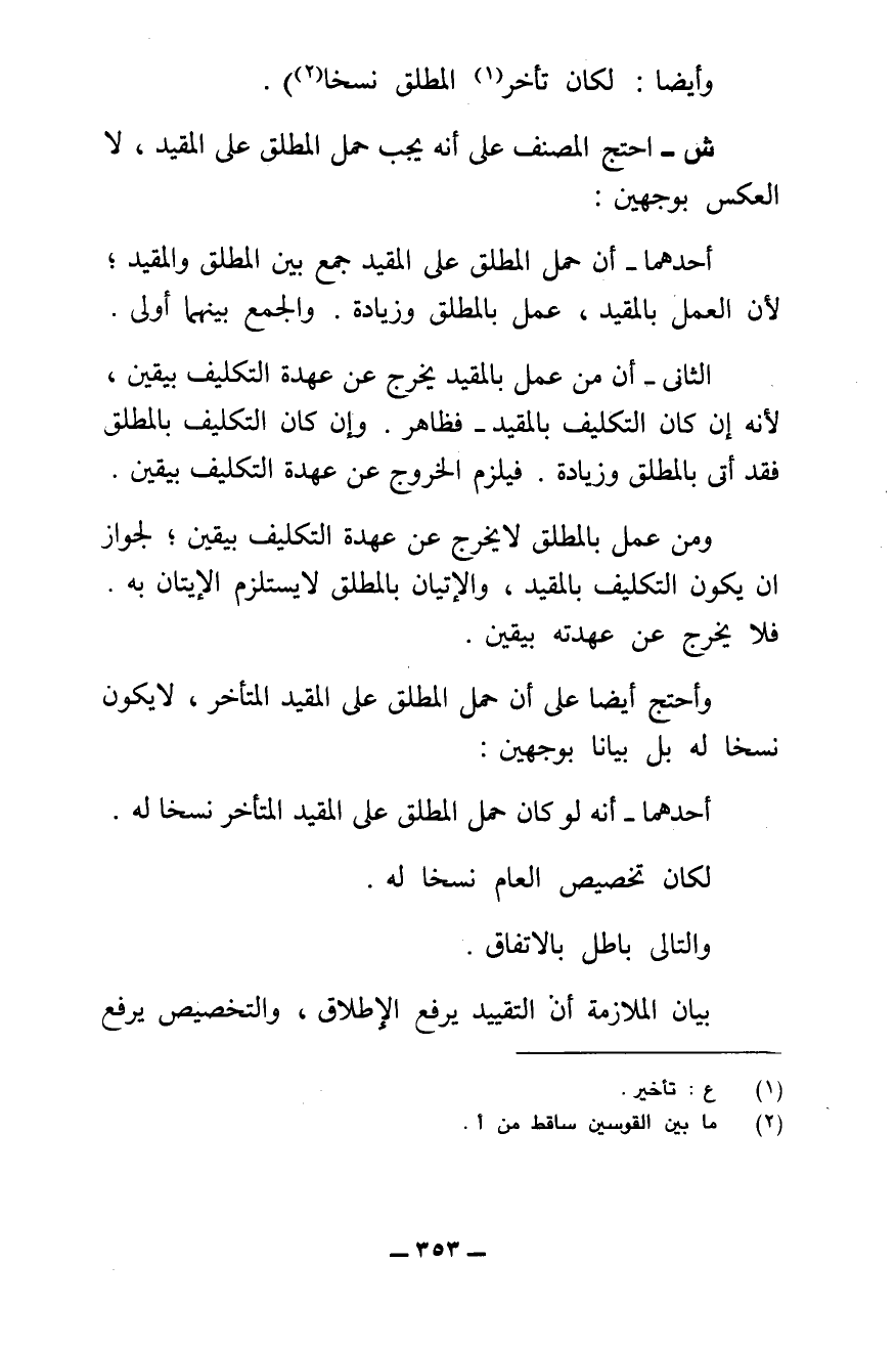 وَأَيْضًا: لَكَانَ تَأَخُّرُ الْمُطْلَقِ نَسْخًا) .