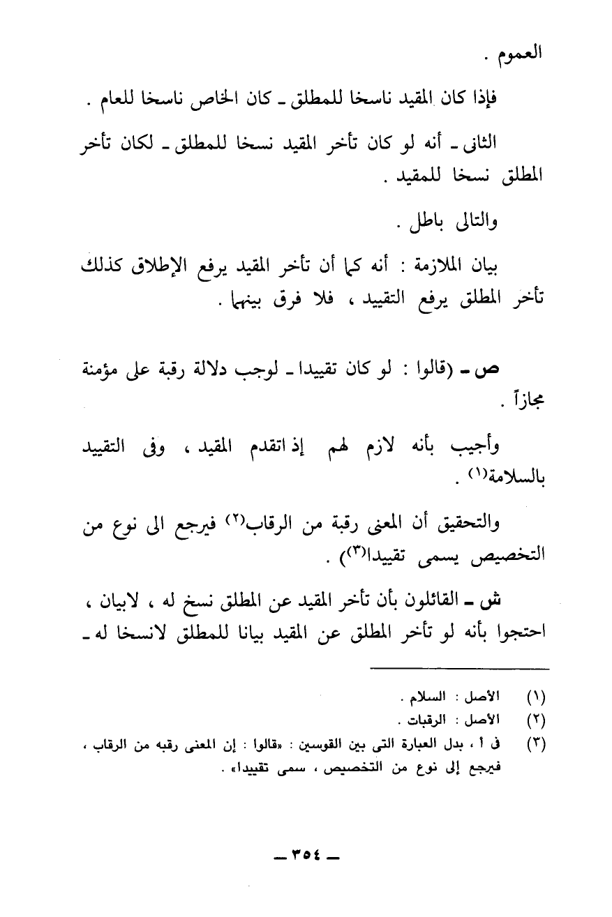 ش - الْقَائِلُونَ بِأَنَّ تَأَخُّرَ الْمُقَيَّدِ عَنِ الْمُطْلَقِ نَسْخٌ لَهُ لَا بَيَانٌ، احْتَجُّوا بِأَنَّهُ لَوْ تَأَخَّرَ الْمُطْلَقُ عَنِ الْمُقَيَّدِ بَيَانًا لِلْمُطْلَقِ لَا نَسْخًا لَهُ -