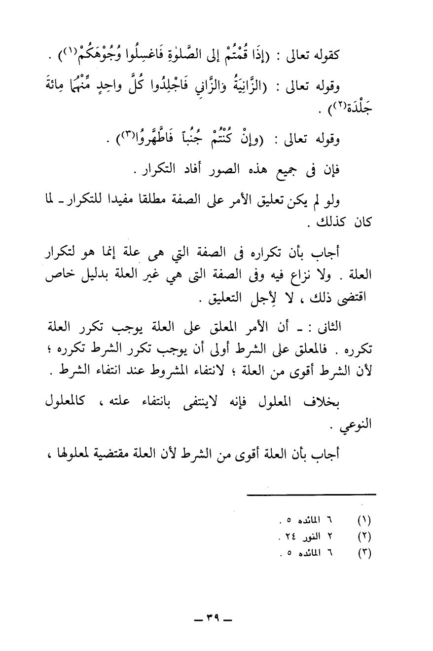 أَجَابَ بِأَنَّ تَكْرَارَهُ فِي الصِّفَةِ الَّتِي هِيَ عِلَّةٌ إِنَّمَا هُوَ لِتَكْرَارِ الْعِلَّةِ. وَلَا نِزَاعَ فِيهِ وَفِي الصِّفَةِ الَّتِي هِيَ غَيْرُ الْعِلَّةِ بِدَلِيلٍ خَاصٍّ اقْتَضَى ذَلِكَ، لَا لِأَجْلِ التَّعْلِيقِ.
