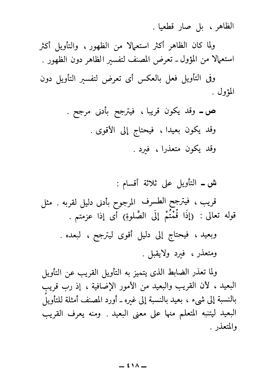 ش - التَّأْوِيلُ عَلَى ثَلَاثَةِ أَقْسَامٍ: