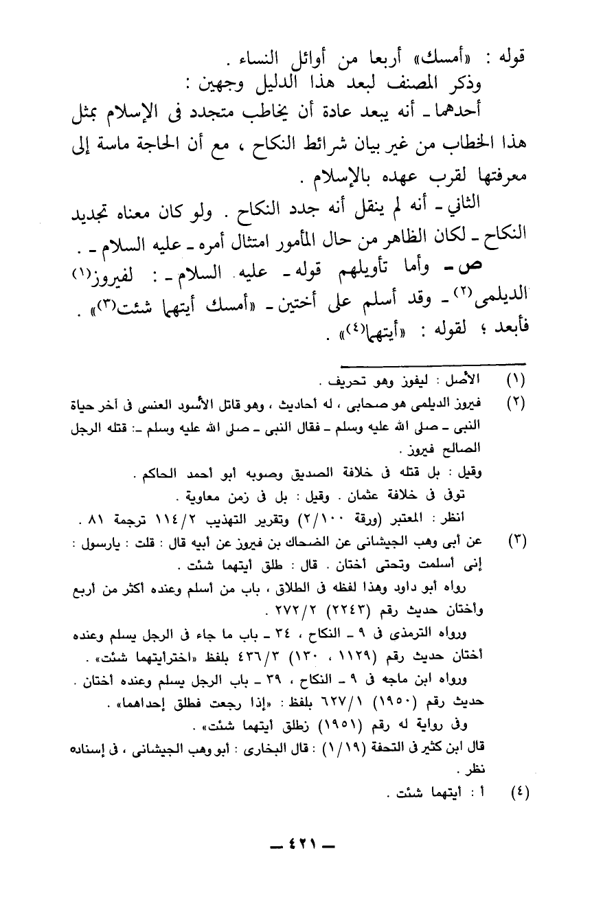 أَحَدُهُمَا - أَنَّهُ يَبْعُدُ عَادَةً أَنْ يُخَاطَبَ مُتَجَدِّدٌ فِي الْإِسْلَامِ بِمِثْلِ هَذَا الْخِطَابِ مِنْ غَيْرِ بَيَانِ شَرَائِطِ النِّكَاحِ، مَعَ أَنَّ الْحَاجَةَ مَاسَّةٌ إِلَى مَعْرِفَتِهَا لِقُرْبِ عَهْدِهِ بِالْإِسْلَامِ.