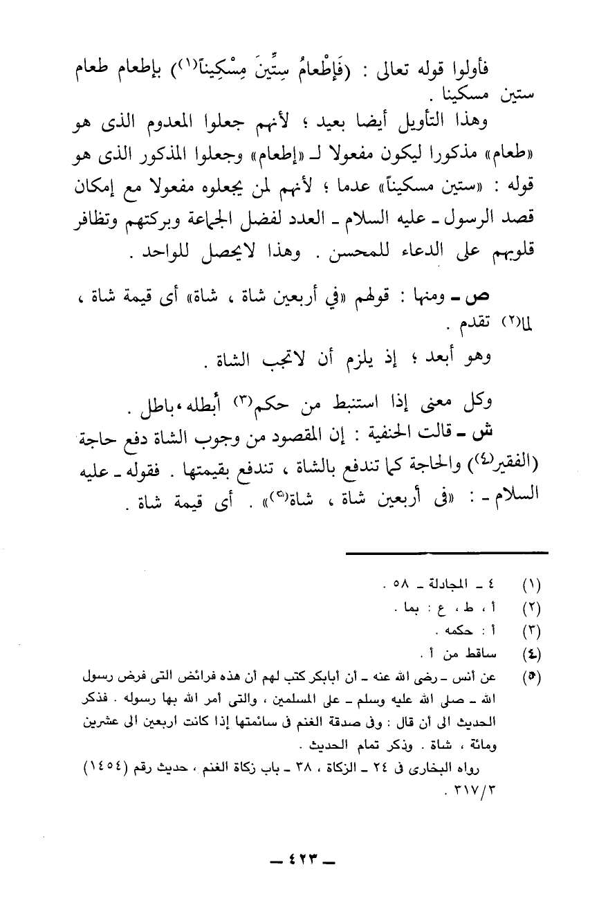 فَأَوَّلُوا قَوْلَهُ تَعَالَى: {فَإِطْعَامُ سِتِّينَ مِسْكِينًا} [المجادلة: ٤] بِإِطْعَامِ طَعَامِ سِتِّينَ مِسْكِينًا.
