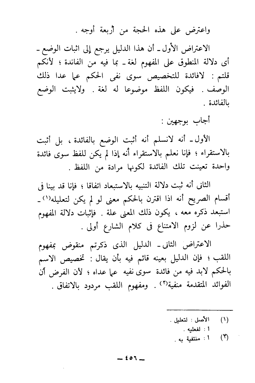 وَاعْتُرِضَ عَلَى هَذِهِ الْحُجَّةِ مِنْ أَرْبَعَةِ أَوْجُهٍ.