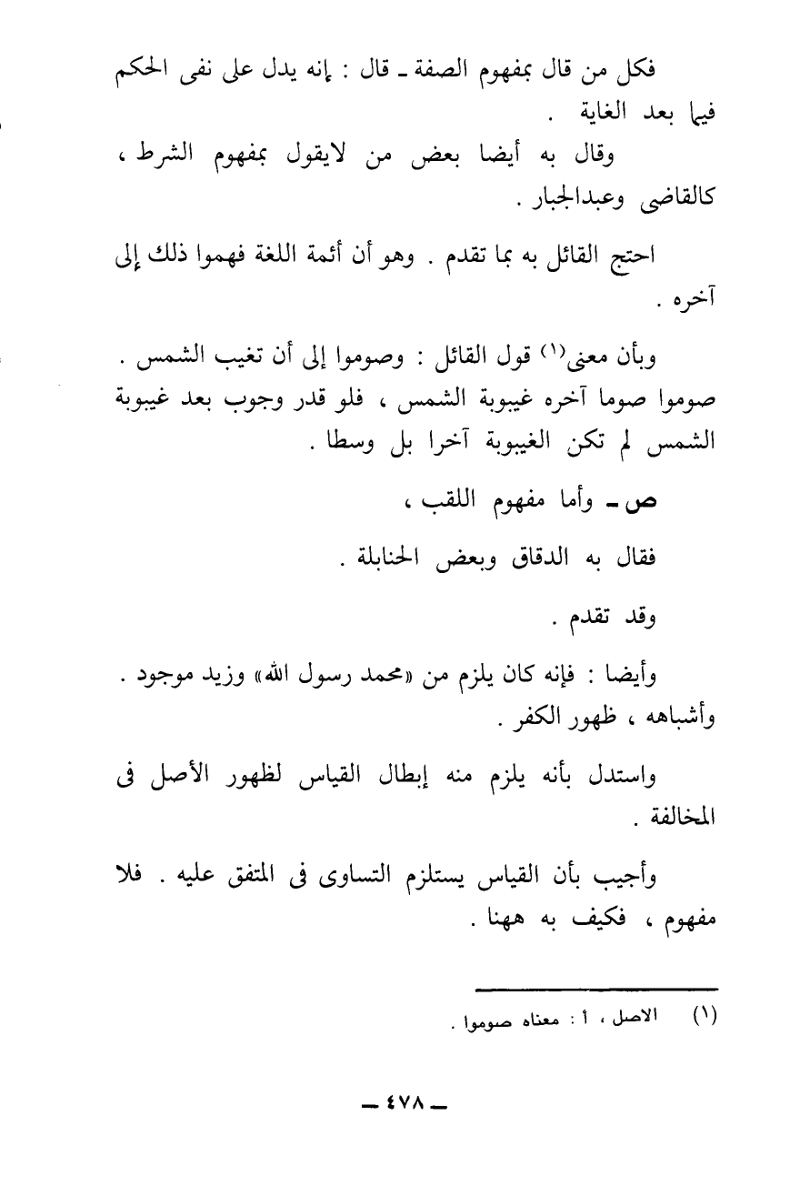 وَبِأَنَّ مَعْنَى قَوْلِ الْقَائِلِ: وَصُومُوا إِلَى أَنْ تَغِيبَ الشَّمْسُ: صُومُوا صَوْمًا آخِرُهُ غَيْبُوبَةُ الشَّمْسِ، فَلَوْ قُدِّرَ وُجُوبٌ بَعْدَ غَيْبُوبَةِ الشَّمْسِ لَمْ تَكُنِ الْغَيْبُوبَةُ آخِرًا بَلْ وَسَطًا.