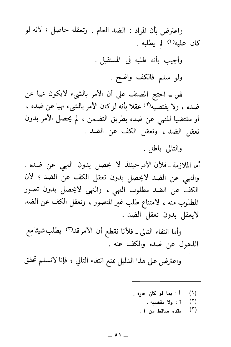 وَاعْتُرِضَ بِأَنَّ الْمُرَادَ: الضِّدُّ الْعَامُّ. وَتَعَقُّلُهُ حَاصِلٌ ; لِأَنَّهُ لَوْ كَانَ عَلَيْهِ لَمْ يَطْلُبْهُ.