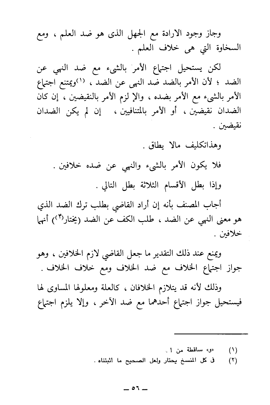 وَيُمْنَعُ عِنْدَ ذَلِكَ التَّقْدِيرِ مَا جَعَلَ الْقَاضِي لَازِمَ الْخِلَافَيْنِ؛ وَهُوَ جَوَازُ اجْتِمَاعِ الْخِلَافِ مَعَ ضِدِّ الْخِلَافِ وَمَعَ خِلَافِ الْخِلَافِ.