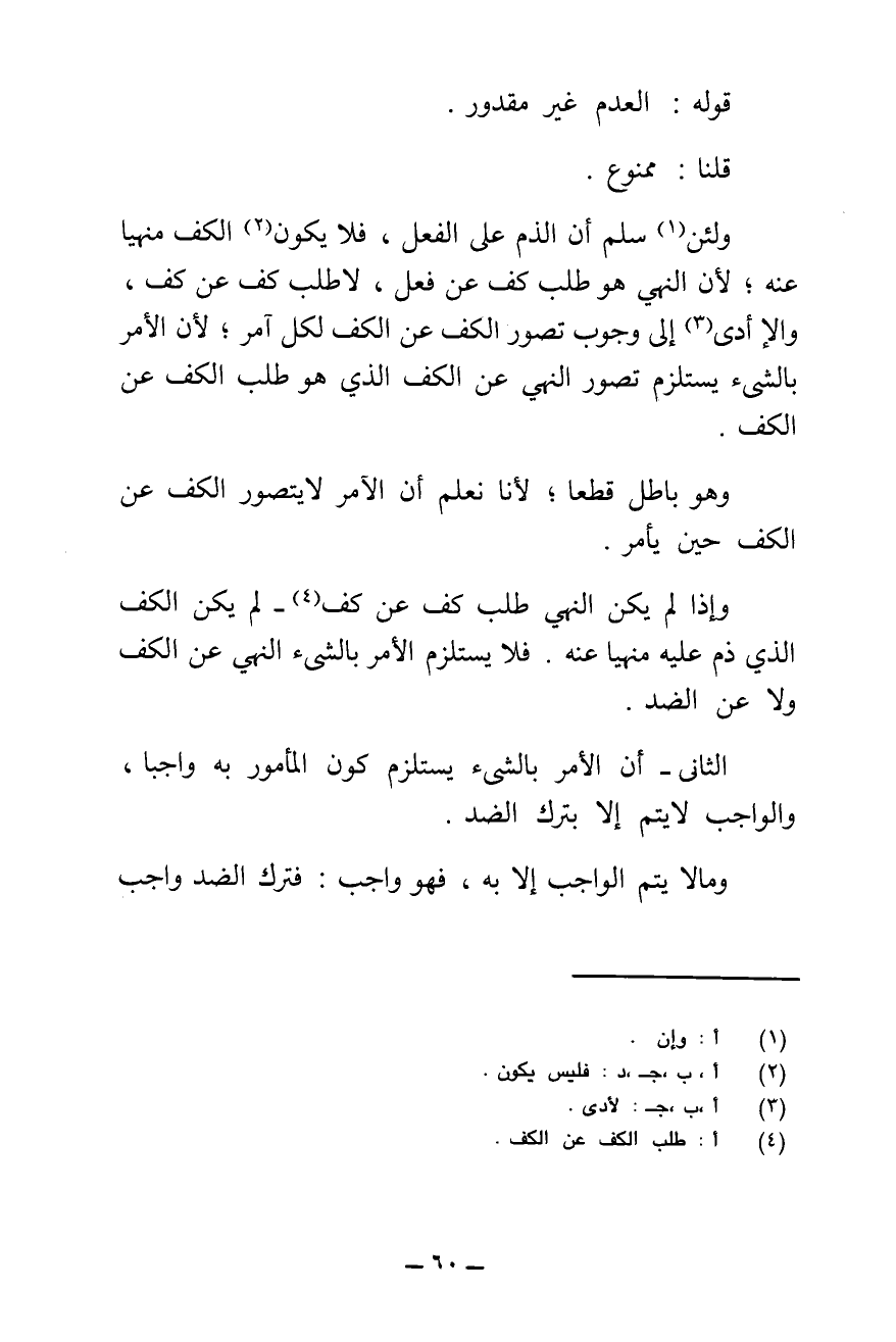 وَلَئِنْ سُلِّمَ أَنَّ الذَّمَّ عَلَى الْفِعْلِ، فَلَا يَكُونُ الْكَفُّ مَنْهِيًّا عَنْهُ ; لِأَنَّ النَّهْيَ هُوَ طَلَبُ كَفٍّ عَنْ فِعْلٍ، لَا طَلَبُ كَفٍّ عَنْ كَفٍّ، وَإِلَّا أَدَّى إِلَى وُجُوبِ تَصَوُّرِ الْكَفِّ عَنِ الْكَفِّ لِكُلِّ آمِرٍ، لِأَنَّ الْأَمْرَ بِالشَّيْءِ يَسْتَلْزِمُ تَصَوُّرَ النَّهْيِ عَنِ الْكَفِّ الَّذِي هُوَ طَلَبُ الْكَفِّ عَنِ الْكَفِّ.