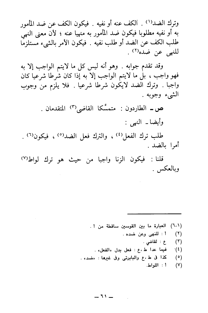 ش - الطَّارِدُونَ: أَعْنِي الْقَائِلِينَ بِأَنَّ النَّهْيَ عَنِ الشَّيْءِ هُوَ بِعَيْنِهِ أَمْرٌ بِضِدِّهِ، كَمَا أَنَّ الْأَمْرَ بِالشَّيْءِ هُوَ عَيْنُ النَّهْيِ عَنْ ضِدِّهِ، احْتَجُّوا بِثَلَاثَةِ وُجُوهٍ: