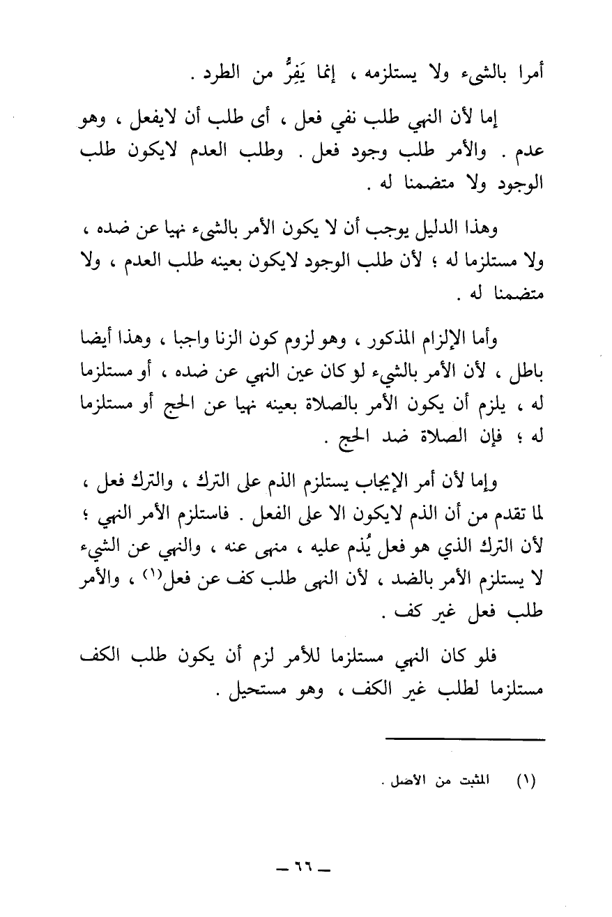 وَهَذَا الدَّلِيلُ يُوجِبُ أَنْ لَا يَكُونَ الْأَمْرُ بِالشَّيْءِ نَهْيًا عَنْ ضِدِّهِ، وَلَا مُسْتَلْزِمًا لَهُ ; لِأَنَّ طَلَبَ الْوُجُودِ لَا يَكُونُ بِعَيْنِهِ طَلَبَ الْعَدَمِ، وَلَا مُتَضَمِّنًا لَهُ.