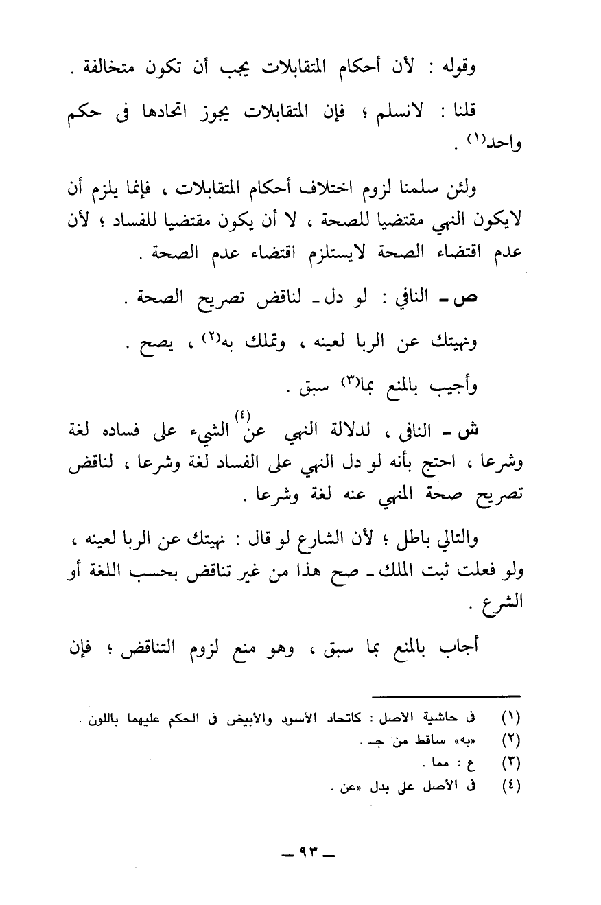 وَالتَّالِي بَاطِلٌ ; لِأَنَّ الشَّارِعَ لَوْ قَالَ: نَهَيْتُكَ عَنِ الرِّبَا لِعَيْنِهِ، وَلَوْ فَعَلْتَ ثَبَتَ الْمِلْكُ صَحَّ هَذَا مِنْ غَيْرِ تَنَاقُضٍ بِحَسَبِ اللُّغَةِ أَوِ الشَّرْعِ.