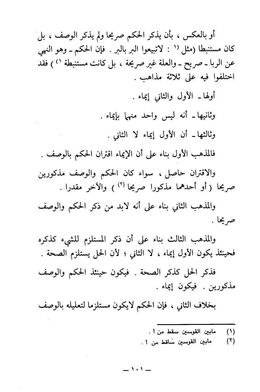 أَوْ بِالْعَكْسِ، بِأَنْ يَذْكُرَ الْحُكْمَ صَرِيحًا وَلَمْ يَذْكُرِ الْوَصْفَ، بَلْ كَانَ مُسْتَنْبَطًا مِثْلَ: لَا تَبِيعُوا الْبُرَّ بِالْبُرِّ. فَإِنَّ الْحُكْمَ، وَهُوَ النَّهْيُ عَنِ الرِّبَا صَرِيحٌ، وَالْعِلَّةُ غَيْرُ صَرِيحَةٍ، بَلْ كَانَتْ مُسْتَنْبَطَةً، فَقَدِ اخْتَلَفُوا فِيهِ عَلَى ثَلَاثَةِ مَذَاهِبَ: