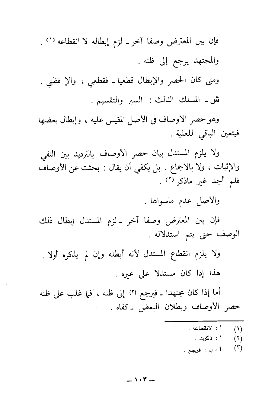 ص - وَمِنْهَا: أَنْ لَا تَظْهَرَ مُنَاسَبَتُهُ، وَيَكْفِي الْمُنَاظِرَ: بَحَثْتُ، فَإِنِ ادَّعَى أَنَّ الْمُسْتَبْقَى كَذَلِكَ، يُرَجَّحُ سَبْرُ الْمُسْتَدِلِّ بِمُوَافَقَتِهِ لِلتَّعْدِيَةِ.