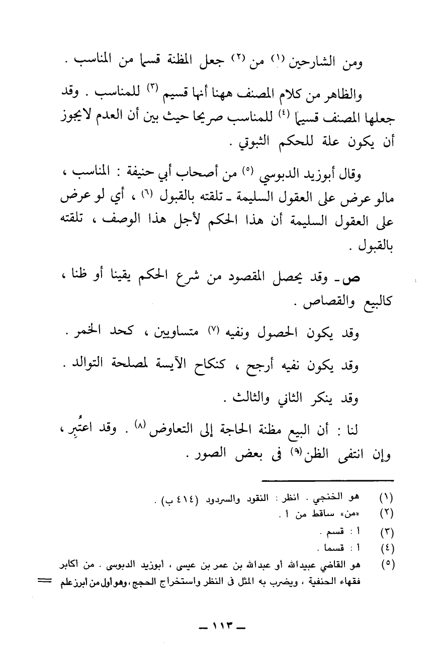 وَقَالَ أَبُو زَيْدٍ الدَّبُّوسِيُّ مِنْ أَصْحَابِ أَبِي حَنِيفَةَ: الْمُنَاسِبُ، مَا لَوْ عُرِضَ عَلَى الْعُقُولِ السَّلِيمَةِ، تَلَقَّتْهُ بِالْقَبُولِ، أَيْ لَوْ عُرِضَ عَلَى الْعُقُولِ السَّلِيمَةِ أَنَّ هَذَا الْحُكْمَ لِأَجْلِ هَذَا الْوَصْفِ، تَلَقَّتْهُ بِالْقَبُولِ.
