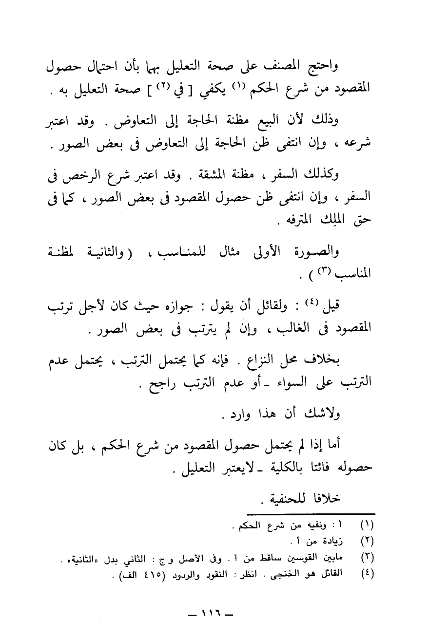 أَمَّا إِذَا لَمْ يُحْتَمَلْ حُصُولُ الْمَقْصُودِ مِنْ شَرْعِ الْحُكْمِ، بَلْ كَانَ حُصُولُهُ فَائِتًا بِالْكُلِّيَّةِ، لَا يُعْتَبَرُ التَّعْلِيلُ خِلَافًا لِلْحَنَفِيَّةِ.