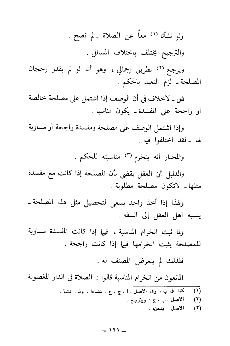 وَلَوْ نَشَأَتَا مَعًا عَنِ الصَّلَاةِ، لَمْ تَصِحَّ، وَالتَّرْجِيحُ يَخْتَلِفُ بِاخْتِلَافِ الْمَسَائِلِ، وَيُرَجَّحُ بِطَرِيقٍ إِجْمَالِيٍّ، وَهُوَ أَنَّهُ لَوْ لَمْ يُقَدَّرْ رُجْحَانُ الْمَصْلَحَةِ، لَزِمَ التَّعَبُّدُ بِالْحُكْمِ.
