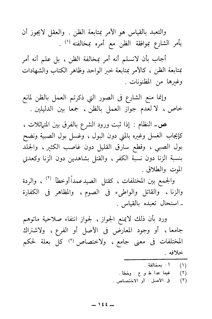 وَالتَّعَبُّدُ بِالْقِيَاسِ هُوَ الْأَمْرُ بِمُتَابَعَةِ الظَّنِّ. وَالْعَقْلُ لَا يُجَوِّزُ أَنْ يَأْمُرَ الشَّارِعُ بِمُوَافَقَةِ الظَّنِّ مَعَ أَمْرِهِ بِمُخَالَفَتِهِ.