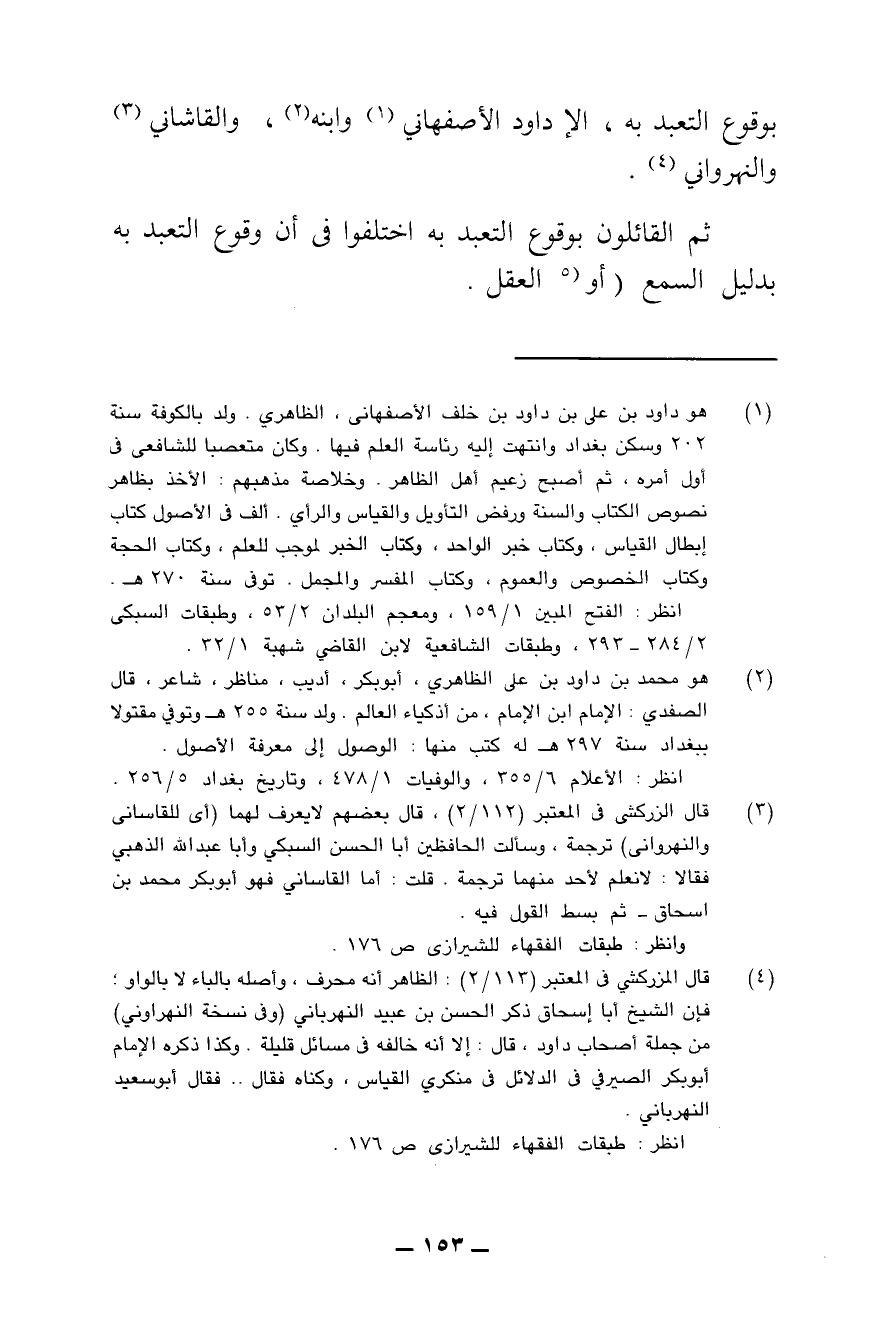 بِوُقُوعِ التَّعَبُّدِ بِهِ، إِلَّا دَاوُدَ الْأَصْفَهَانِيَّ وَابْنَهُ، وَالْقَاشَانِيَّ وَالنَّهْرَوَانِيَّ.