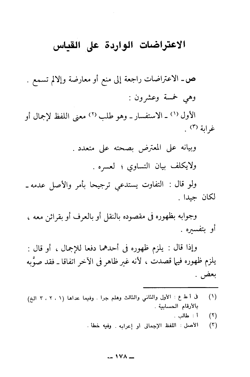 ص - الِاعْتِرَاضَاتُ رَاجِعَةٌ إِلَى مَنْعٍ أَوْ مُعَارَضَةٍ، وَإِلَّا لَمْ تُسْمَعْ، وَهِيَ خَمْسَةٌ وَعِشْرُونَ: