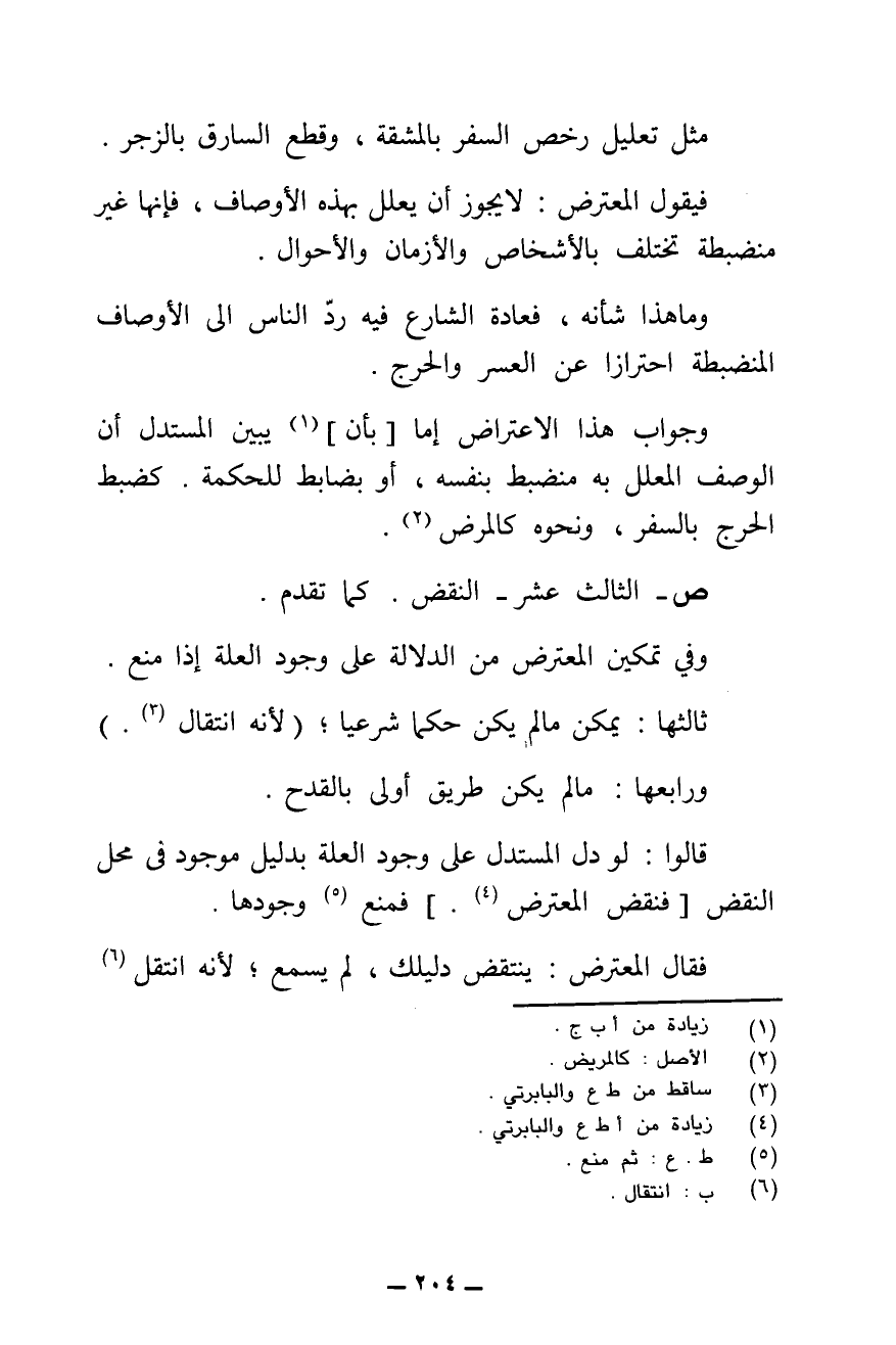 فَيَقُولُ الْمُعْتَرِضُ: هَذَا مَنْقُوضٌ بِالْحُلِيِّ الْغَيْرِ الْمُبَاحِ، فَإِنَّهُ مَالٌ غَيْرُ نَامٍ مَعَ وُجُوبِ الزَّكَاةِ فِيهِ، وَدَفْعُهُ إِمَّا بِمَنْعِ وُجُودِ الْعِلَّةِ فِي صُورَةِ النَّقْضِ، وَإِمَّا بِمَنْعِ تَخَلُّفِ الْحُكْمِ فِيهَا.