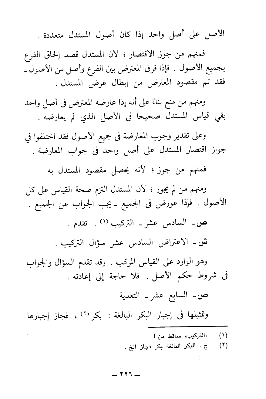 ش - الِاعْتِرَاضُ السَّادِسَ عَشَرَ، سُؤَالُ التَّرْكِيبِ، وَهُوَ الْوَارِدُ عَلَى الْقِيَاسِ الْمُرَكَّبِ، وَقَدْ تَقَدَّمَ السُّؤَالُ وَالْجَوَابُ فِي شُرُوطِ حُكْمِ الْأَصْلِ، فَلَا حَاجَةَ إِلَى إِعَادَتِهِ.