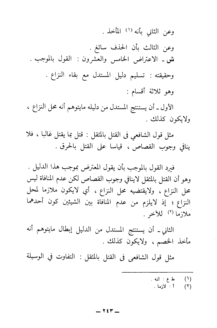 وَعَنِ الثَّانِي بِأَنَّهُ الْمَأْخَذُ، وَعَنِ الثَّالِثِ بِأَنَّ الْحَذْفَ سَائِغٌ.