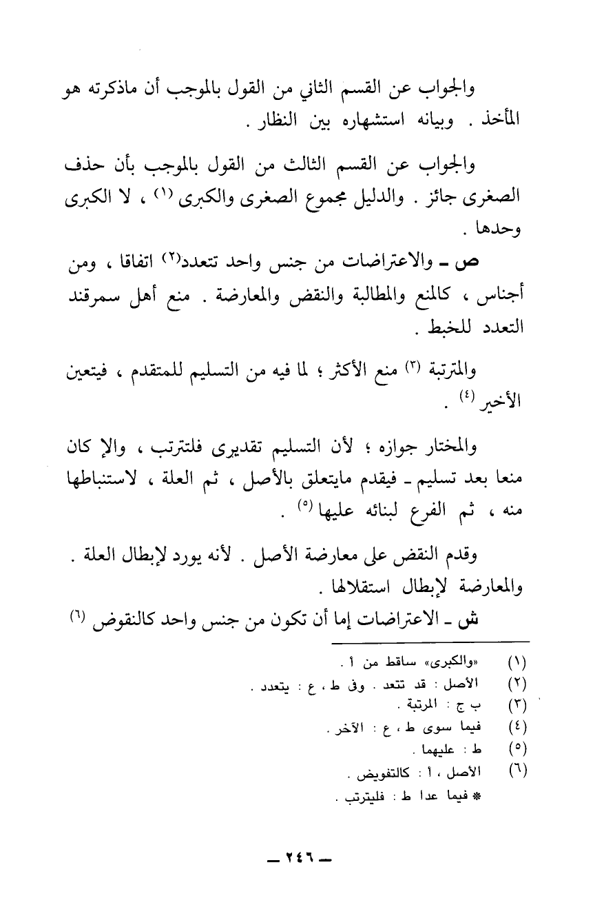 ش - الِاعْتِرَاضَاتُ إِمَّا أَنْ تَكُونَ مِنْ جِنْسٍ وَاحِدٍ كَالنُّقُوضِ