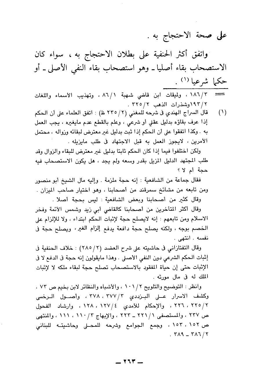 وَاتَّفَقَ أَكْثَرُ الْحَنَفِيَّةِ عَلَى بُطْلَانِ الِاحْتِجَاجِ بِهِ، سَوَاءٌ كَانَ الِاسْتِصْحَابُ بَقَاءً أَصْلِيًّا، وَهُوَ اسْتِصْحَابُ بَقَاءِ النَّفْيِ الْأَصْلِيِّ، أَوْ حُكْمًا شَرْعِيًّا،