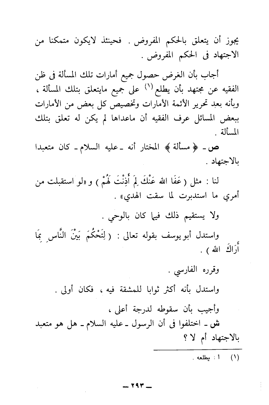 يَجُوزُ أَنْ يَتَعَلَّقَ بِالْحُكْمِ الْمَفْرُوضِ. فَحِينَئِذٍ لَا يَكُونُ مُتَمَكِّنًا مِنَ الِاجْتِهَادِ فِي الْحُكْمِ الْمَفْرُوضِ.