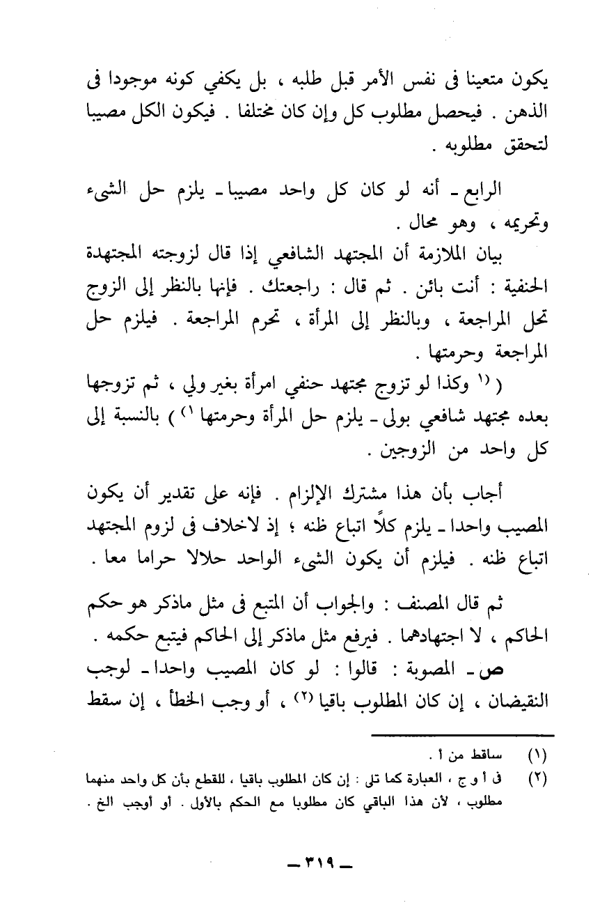ش - احْتَجَّتِ الْمُصَوِّبَةُ بِوَجْهَيْنِ: