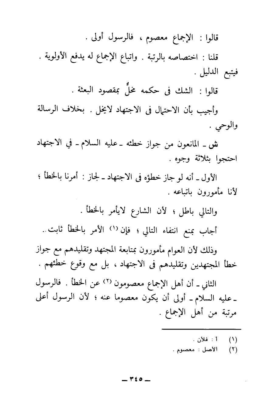 قَالُوا: الْإِجْمَاعُ مَعْصُومٌ، فَالرَّسُولُ أَوْلَى.