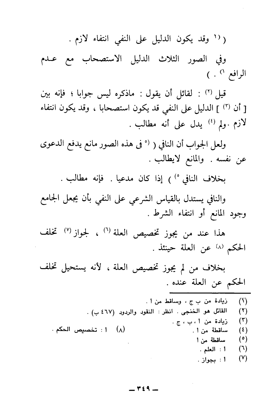 قِيلَ: لِقَائِلٍ أَنْ يَقُولَ: مَا ذَكَرَهُ لَيْسَ جَوَابًا ; فَإِنَّهُ بَيَّنَ أَنَّ الدَّلِيلَ عَلَى النَّفْيِ قَدْ يَكُونُ اسْتِصْحَابًا، وَقَدْ يَكُونُ انْتِفَاءَ لَازِمٍ، وَلَمْ يَدُلَّ عَلَى أَنَّهُ مُطَالَبٌ.